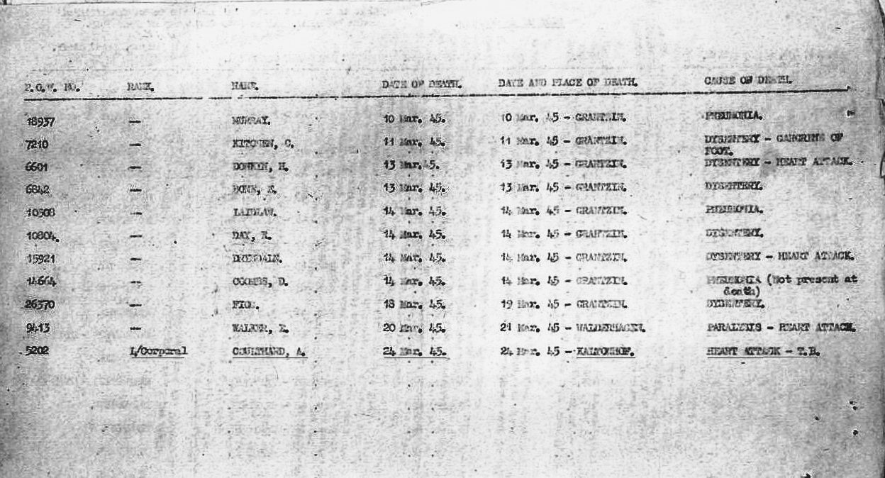 List of Deaths on the March from XXA Thorn to the Magdeburg area.